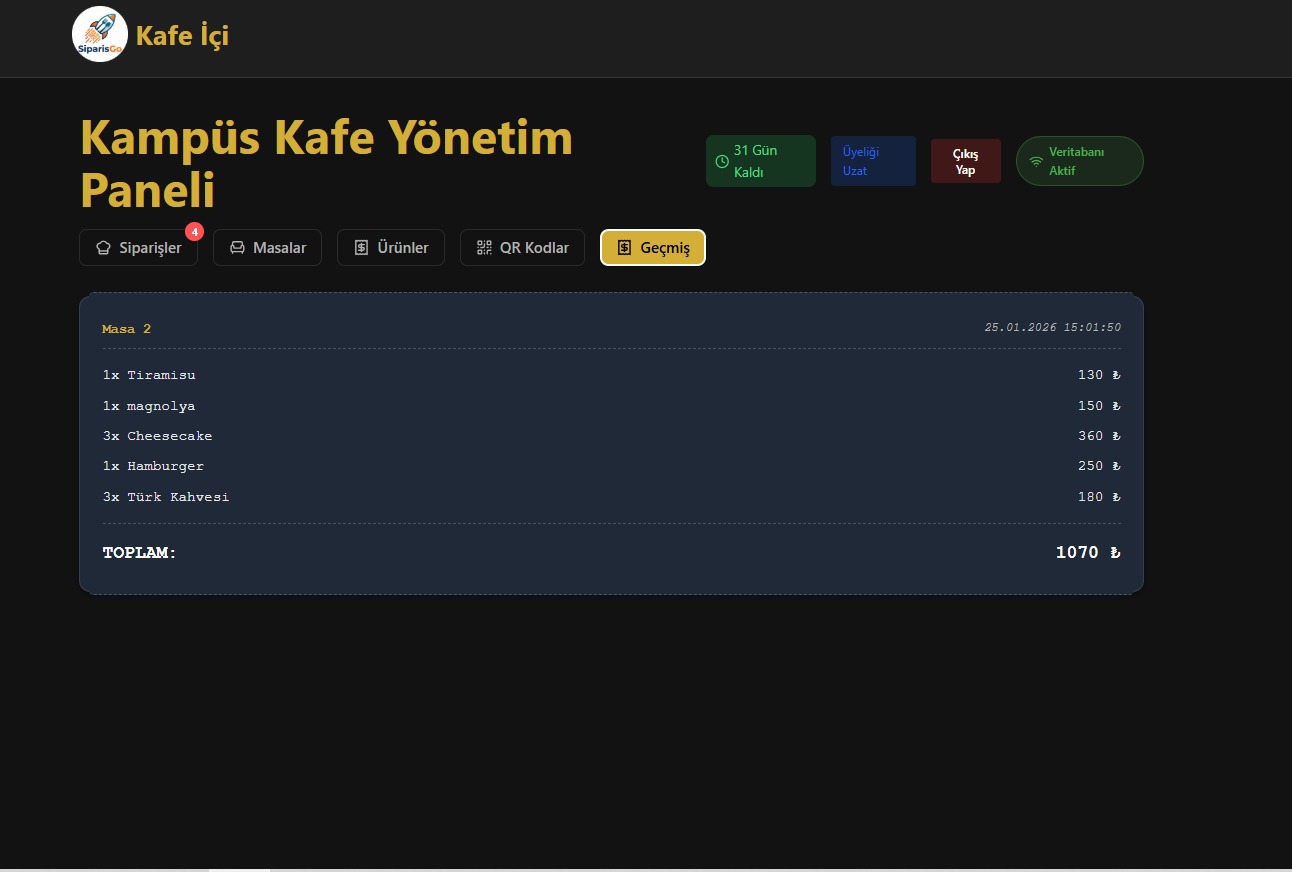 İnternet bağlantınız kesilirse sistem çalışmaz. Ancak siparişler kaydedilmiş olduğundan internet geldiğinde görüntüleyebilirsiniz.