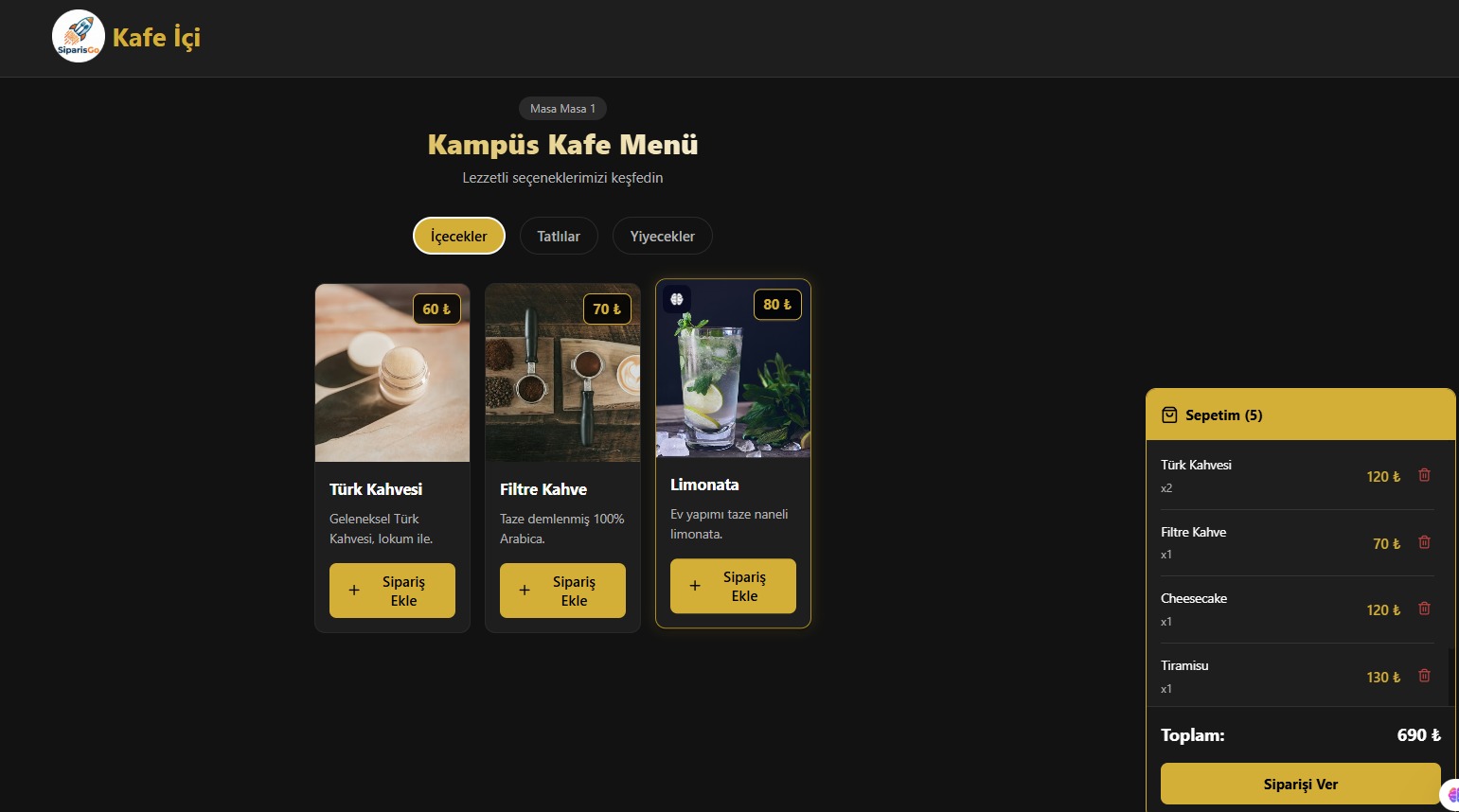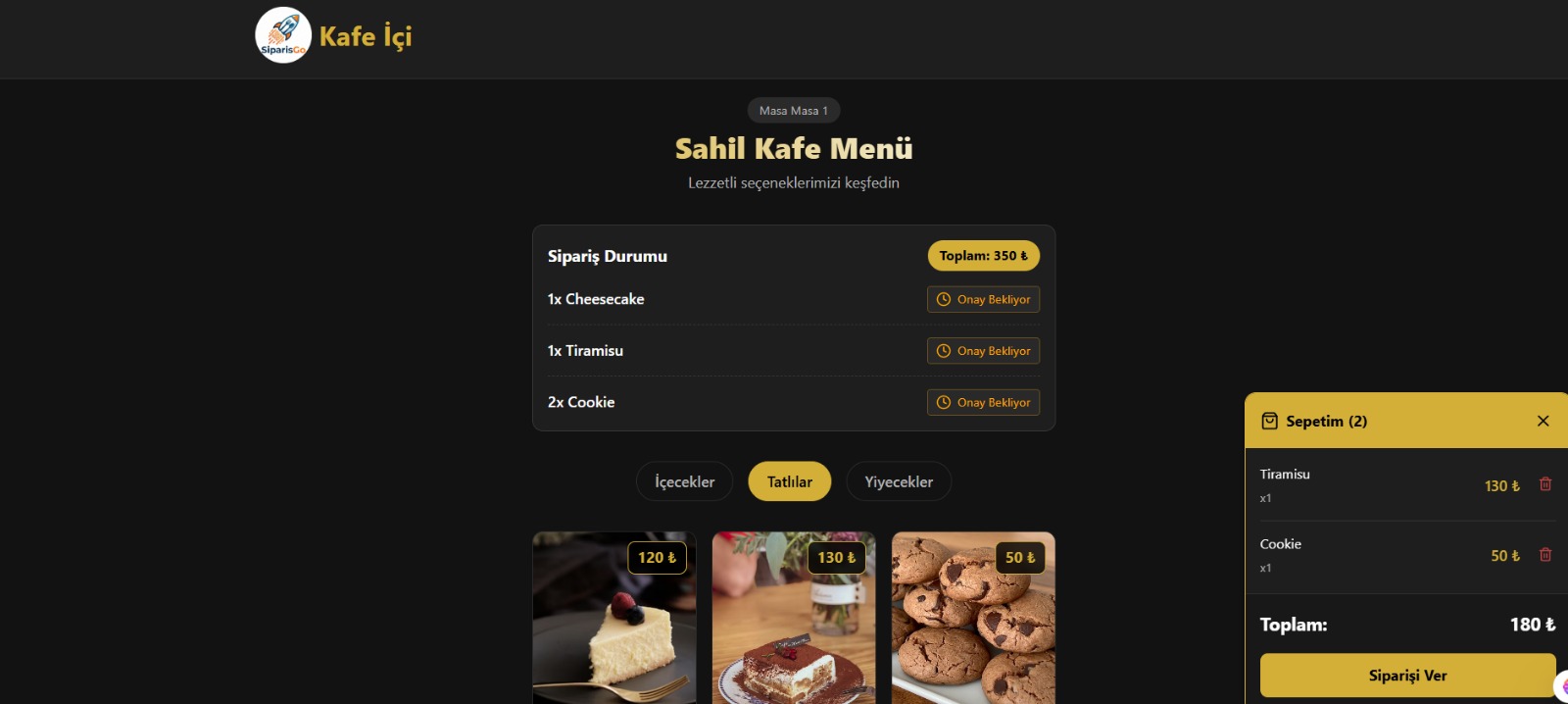 Kategorilere göre düzenlenmiş menüden ürünleri seçsin, sepete eklesin ve tek tuşla siparişini versin.