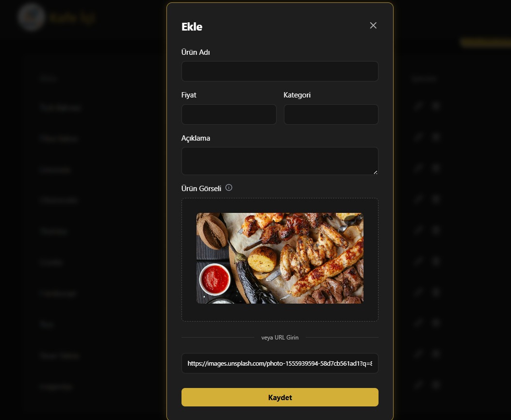 Görsel açıklamalarla zenginleştirilmiş kategorize menü. Fiyat güncellemelerini anında yansıtın, kağıt menü maliyetine son verin.